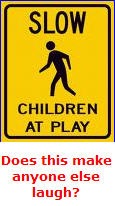 RE: Oh no! I don’t laugh at the sign because I think people can drive as fast as they want…I laugh at the sign because it seems to imply that the children nearby are…um…slow.